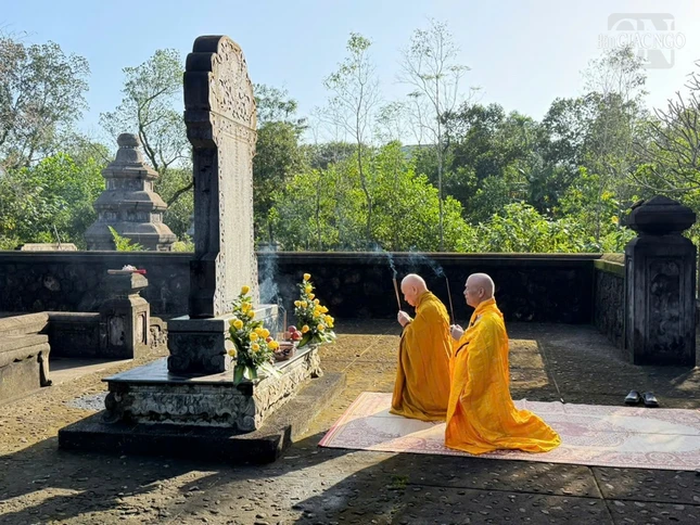 Dâng hương tưởng niệm tại bảo tháp Tổ sư Tâm Khoan |
