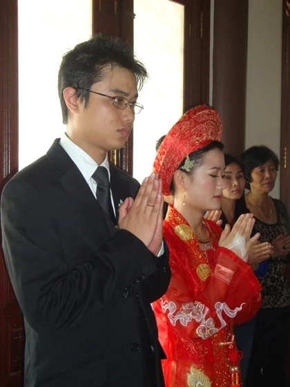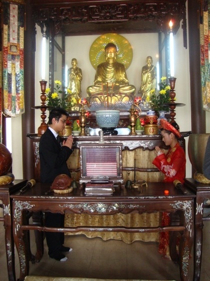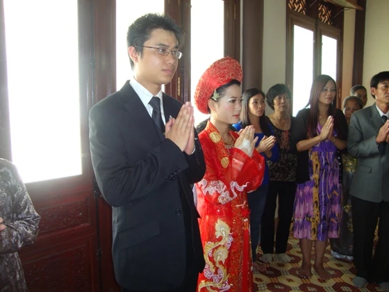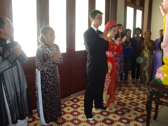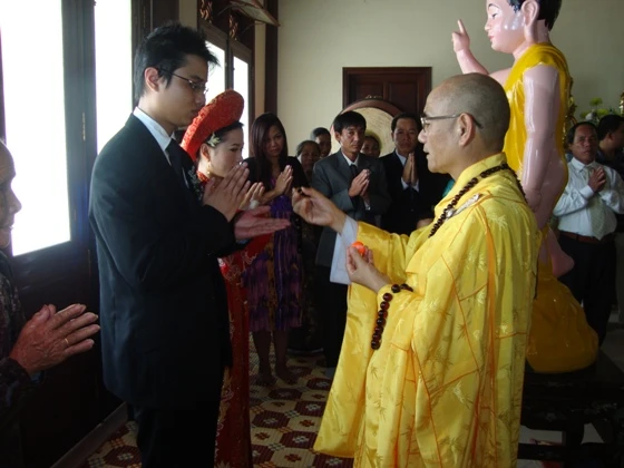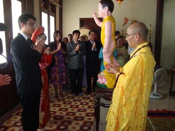 (GNO-Huế): Chiều ngày 02-02-2010, tại chùa Mật Trí - thành phố Huế, đã diễn ra Lễ Hằng thuận giữa huynh trưởng Nguyên Phước - Lê Thị Hạnh, thủ quỷ GĐPT Cự Lại (ảnh) và Phan Ngọc Hải, buổi lễ diễn ra trong không khí trang nghiêm với sự chứng minh của TT. Thích Tâm Pháp - Trú trì chùa Mật Trí và bà con hai họ