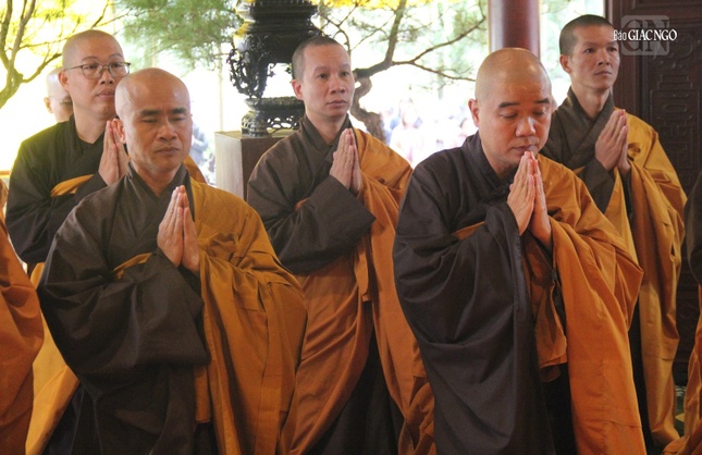 Theo chương trình, đúng 10 giờ, Tăng Ni trong môn phái tổ đình Từ Hiếu và Tăng thân Làng Mai ở các nơi trở về tác pháp cung thỉnh chư tôn đức quang lâm chánh điện tổ đình cử hành lễ cúng ngọ theo nghi thức thiền môn Phật giáo cố đô do Hòa thượng Thích Thanh Hòa đương vi sám chủ.