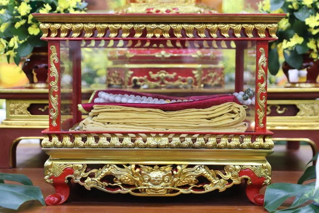 Kim quan Trưởng lão Hòa thượng được tôn trí tại chùa Thánh Long |