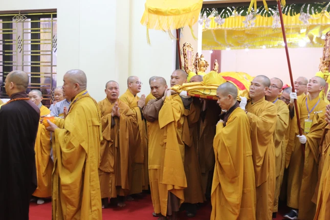 Cung thỉnh nhục thân Trưởng lão Hòa thượng tân viên tịch nhập kim quan |