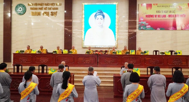 Trước đó, sáng cùng ngày, Phật tử tham dự khóa tu Ngày an lạc được nghe hai thời pháp về Ý nghĩa Vu lan do Ni trưởng Thích nữ Như Thảo, Phó ban Hoằng pháp Phật giáo TP.HCM, Phó Thường trực Phân ban Ni giới TP.HCM và Ni sư Thích nữ Tịnh Vân, Phó khoa Pali Học viện Phật giáo VN tại TP.HCM thuyết giảng.