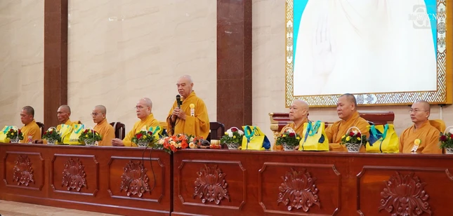 Hòa thượng Thích Tắc Huê, Phó ban Hoằng pháp GHPGVN TP.HCM cảm tạ kết thúc lễ Vu lan trong khóa tu Ngày an lạc, tại Việt Nam Quốc Tự |