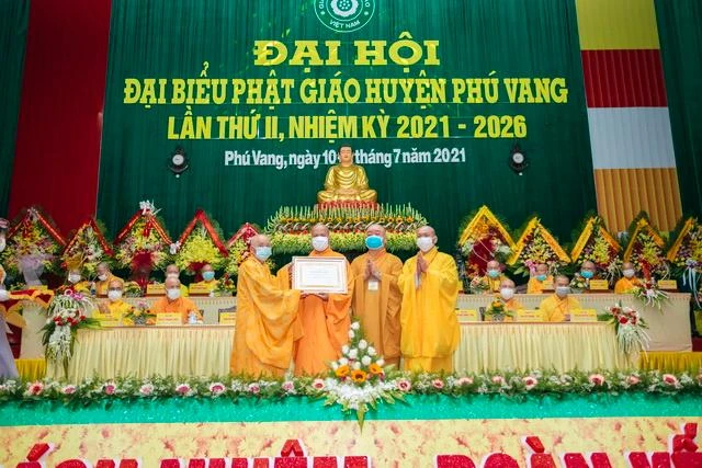Phát biểu khai mạc, Đại đức Thích Nhật Tuệ, Trưởng ban Trị sự GHPGVN huyện Phú Vang, Trưởng Ban Tổ chức đã điểm lại những dấu ấn và đặc điểm của Phật giáo ở huyện nhà cũng như nhân duyên đưa đến các thành tựu Phật sự trong nhiệm kỳ 2016-2021.