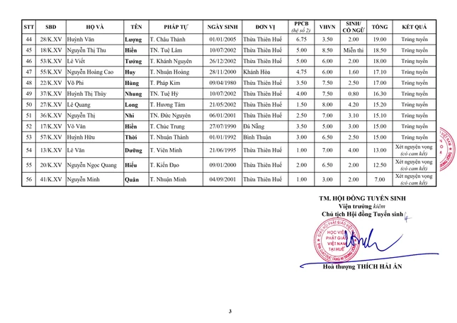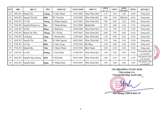 GNO - Hòa thượng Thích Hải Ấn, Ủy viên Thường trực Hội đồng Trị sự, Viện trưởng Học viện Phật giáo VN tại Huế vừa ấn ký công bố kết quả tuyển sinh cử nhân Phật học khóa XV (2024-2028).