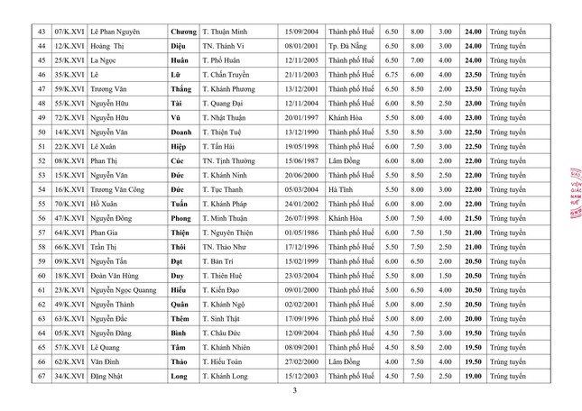 Được biết, kỳ tuyển sinh có 71/76 thí sinh trúng tuyển.