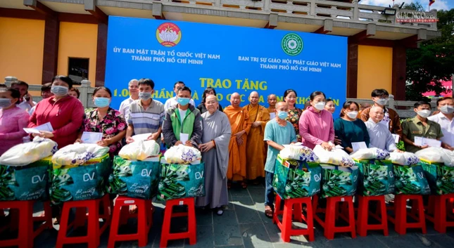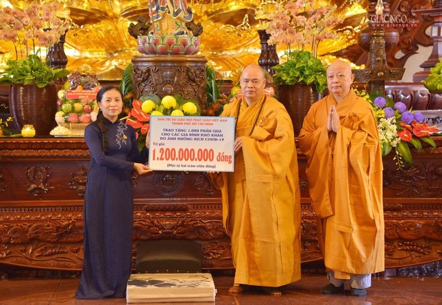 Dịp này, Ban Trị sự GHPGVN TP.HCM trao đến Quỹ "Vì người nghèo" thuộc Ủy ban MTTQVN TP.HCM 1 tỷ đồng; kết hợp Ủy ban MTTQVN TP.HCM trao tặng 1.000 phần quà đến những gia đình có người thân tử vong trong đại dịch, đồng bào có hoàn cảnh khó khăn. Tổng trị giá 2,2 tỷ đồng.