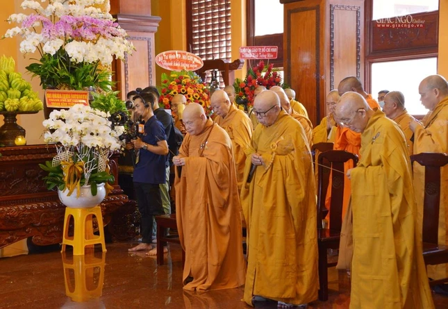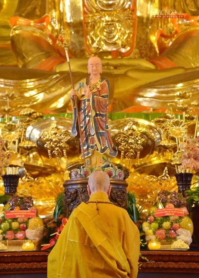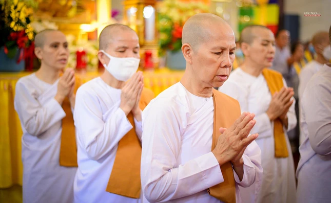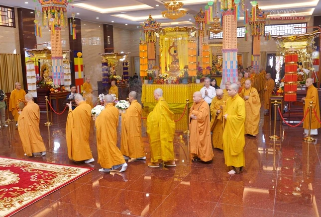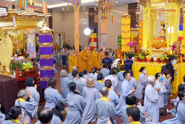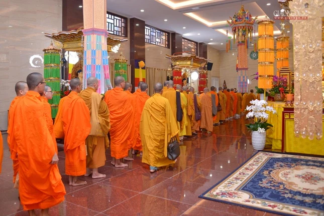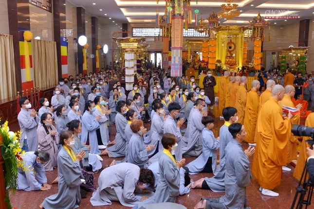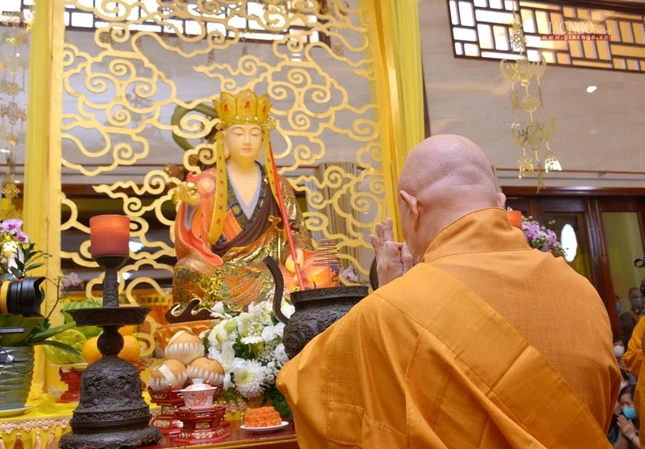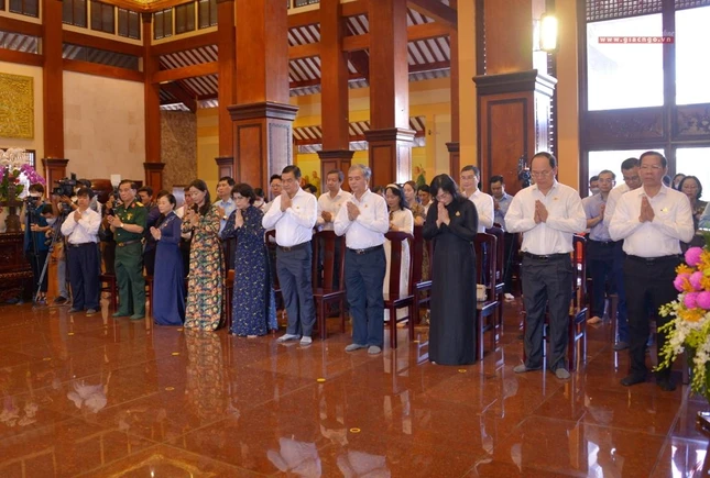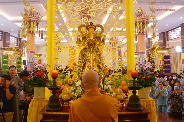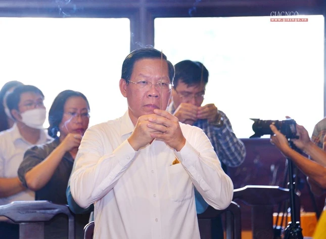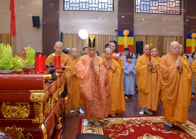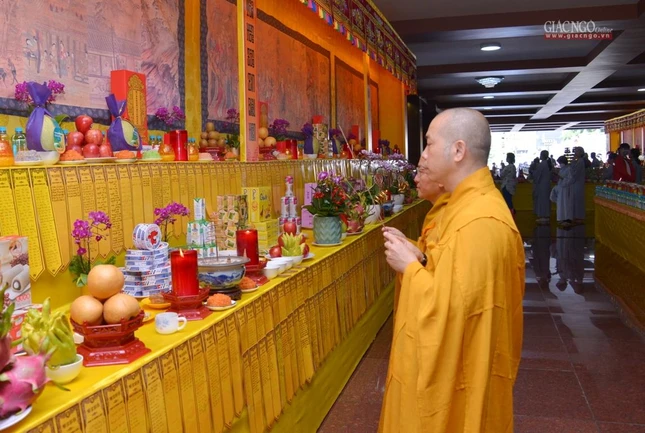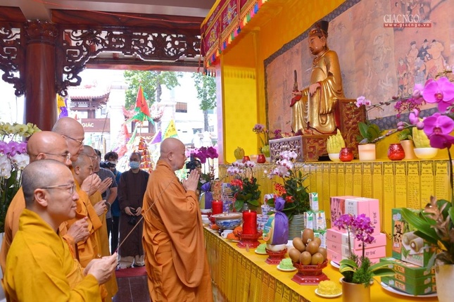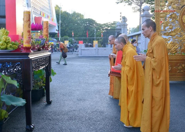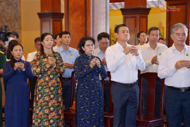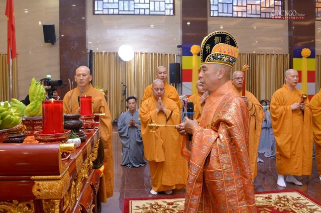 Trong giờ phút thiêng liêng tại chánh điện Việt Nam Quốc Tự, Trưởng lão Hòa thượng Quyền Pháp chủ GHPGVN đã đại diện chư tôn giáo phẩm Hội đồng Chứng minh niêm hương bạch Phật. Thượng tọa Thích Quảng Chơn, Trưởng ban Nghi lễ TP.HCM đã dẫn lễ cùng chư tôn đức Hội đồng Chứng minh, Hội đồng Trị sự, Ban Trị sự GHPGVN TP.HCM, TP.Thủ Đức, 21 quận huyện, lãnh đạo TP.HCM, quận 10 dâng hương tưởng niệm, cầu nguyện chư hương linh đồng bào tử vong, anh linh cán bộ, chiến sĩ, lực lượng tuyến đầu hy sinh trong đại dịch Covid-19. Tất cả một lòng cầu nguyện chư hương linh vượt qua ải khổ, siêu tiến về cõi tịnh, cầu nguyện đất nước thái bình, nhà nhà an cư lạc nghiệp.