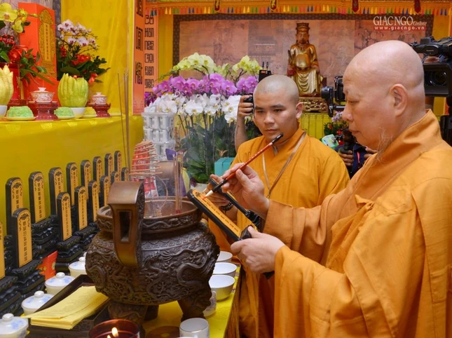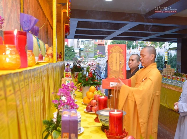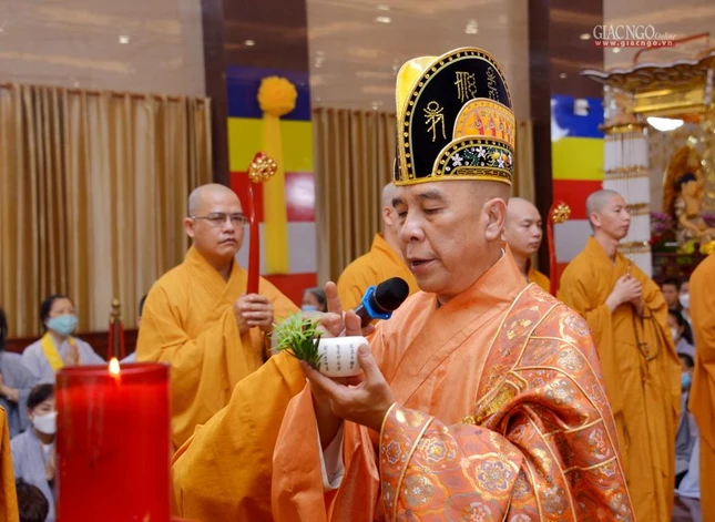 Hòa thượng Thích Lệ Trang, Trưởng ban Trị sự GHPGVN TP.HCM đã niêm đàn sái tịnh, bạch Phật khai kinh |
