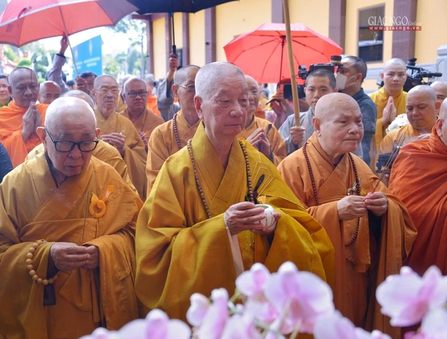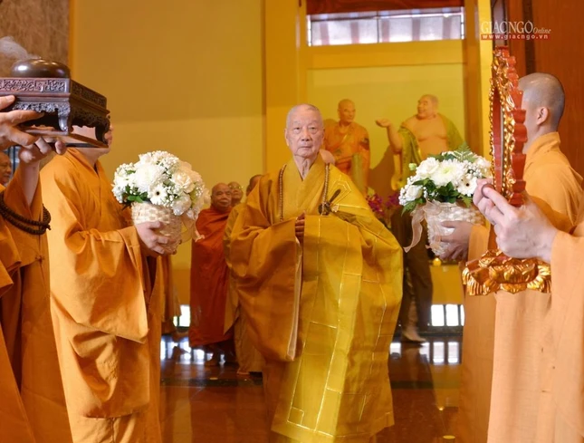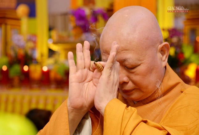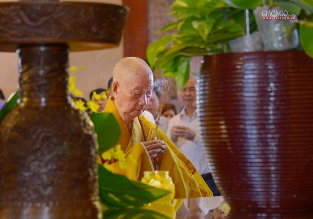 Trưởng lão Hòa thượng Quyền Pháp chủ GHPGVN đã đại diện chư tôn giáo phẩm Hội đồng Chứng minh niêm hương bạch Phật |