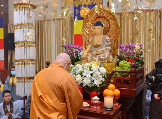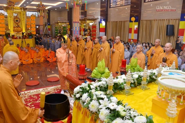 GNO - Sáng nay, 18-8 (21-7-Nhâm Dần), Ban Trị sự GHPGVN TP.HCM đã trang nghiêm khai mạc Đại lễ tưởng niệm, kỳ siêu đồng bào tử vong, cán bộ, chiến sĩ hy sinh trong đại dịch Covid-19, tại Việt Nam Quốc Tự (số 242-244 đường 3/2, phường 12, quận 10, TP.HCM).