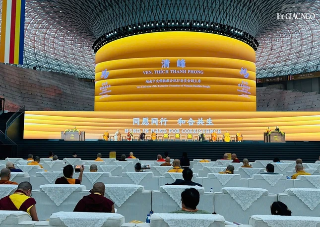 Phát biểu khai mạc, Trưởng lão Hòa thượng Diễn Giác, Chủ tịch Hiệp hội Phật giáo Trung Quốc đã chào mừng chư tôn giáo phẩm lãnh đạo Phật giáo khắp thế giới, quý học giả đại biểu hiện diện tại TP.Ninh Ba giàu truyền thống văn hóa Phật giáo. Trưởng lão Hòa thượng cho biết, với chủ đề “Đồng nguyện đồng hành, hòa hợp cộng sinh”, Diễn đàn lần này muốn lan tỏa lời dạy của Đức Phật hướng đến sự hòa hợp giữa con người trên khắp thế giới trước thực tế đang có nhiều biến động và thách thức.