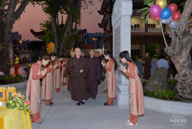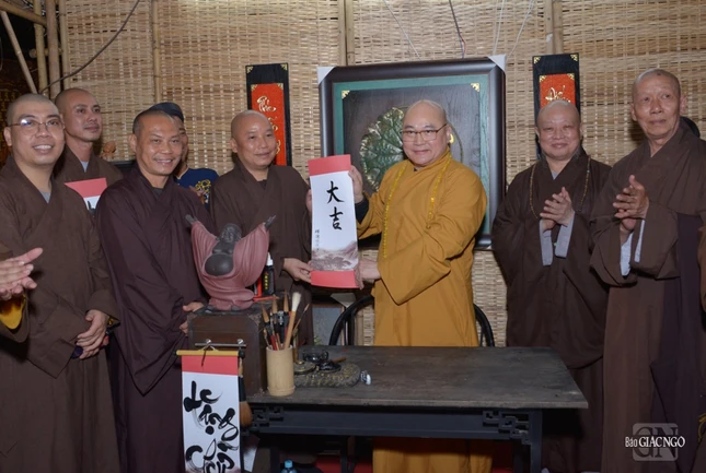 Hòa thượng Thích Lệ Trang, Trưởng ban Trị sự GHPGVN TP.HCM tặng hoa chúc mừng |