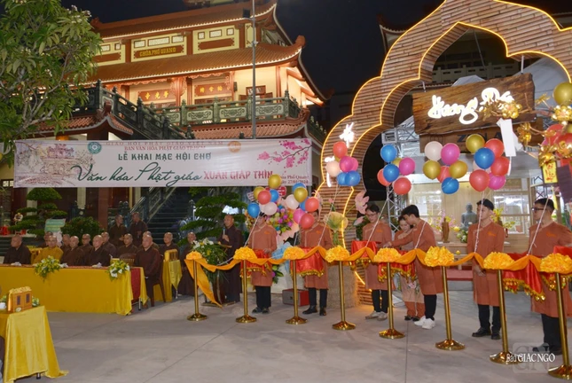 Sau buổi lễ, chư tôn đức đã thực hiện nghi thức cắt băng khai mạc Hội chợ văn hóa Phật giáo tại chùa Phổ Quang. Hội chợ sẽ kéo dài đến hết ngày 25 tháng Chạp Quý Mão (4-2-2024).