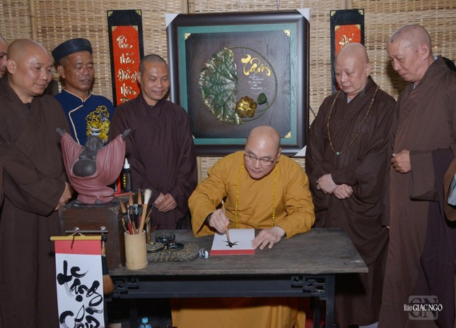 Thượng tọa Thích Trí Chơn, Trưởng ban Văn hóa GHPGVN TP.HCM, Trưởng ban Tổ chức phát biểu khai mạc cho biết thực hiện chỉ đạo của Ban Trị sự GHPGVN TP.HCM, Ban Văn hóa Phật giáo TP.HCM tổ chức thực hiện 2 chương trình nhân dịp Tết cổ truyền Giáp Thìn: Tổ chức hội chợ văn hóa phẩm Phật giáo từ ngày 17 đến 25 tháng Chạp năm Quý Mão (27-1 đến 4-2-2024) tại chùa Phổ Quang (Q.Tân Bình) và chương trình "Phố ông đồ - nghệ thuật thư pháp" từ ngày 25 tháng Chạp đến hết tháng Giêng năm Giáp Thìn (ngày 4 đến 24-2-2024), tại Việt Nam Quốc Tự.