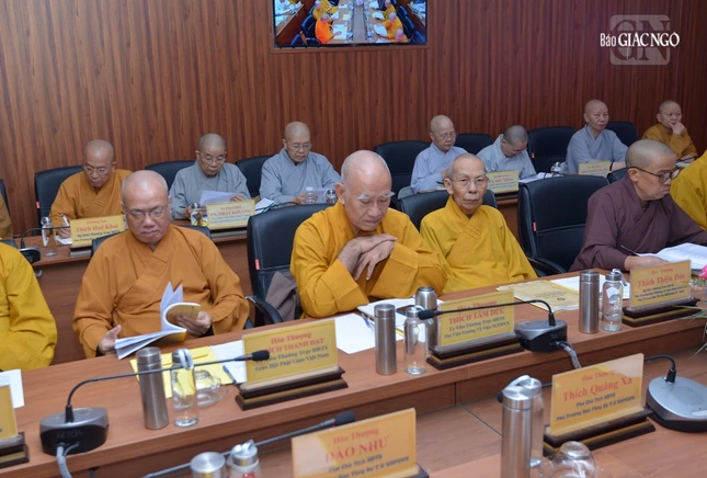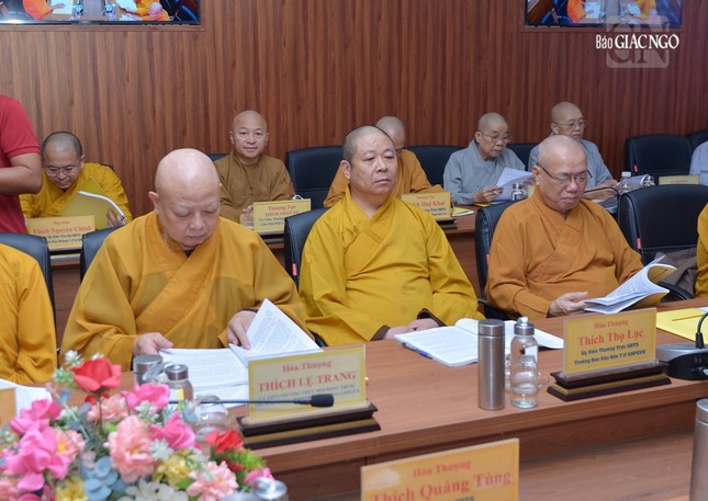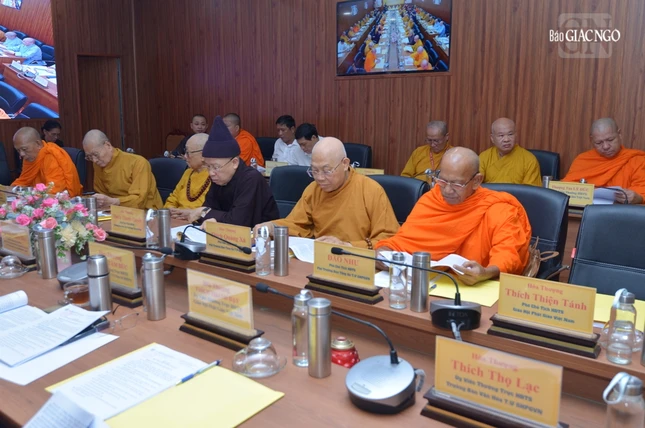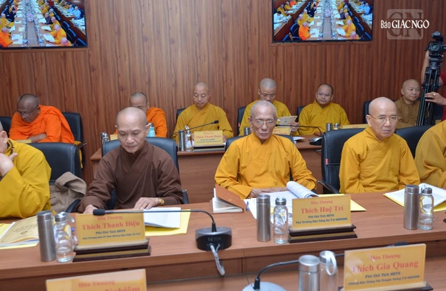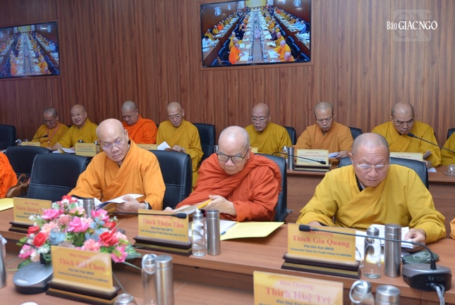 Trưởng lão Hòa thượng Thích Thiện Nhơn, Phó Pháp chủ Hội đồng Chứng minh, Chủ tịch Hội đồng Trị sự; cùng nhị vị giáo phẩm Hòa thượng Thích Thiện Pháp, Hòa thượng Thích Thanh Nhiễu, đồng Phó Chủ tịch Thường trực Hội đồng Trị sự chủ tọa hội nghị; chư tôn đức Phó Chủ tịch Hội đồng Trị sự, Ủy viên Thường trực Hội đồng Trị sự, Trưởng các Ban, Viện T.Ư (hiện diện 56/ 65 vị thuộc Ban Thường trực Hội đồng Trị sự) tham gia hội nghị.
