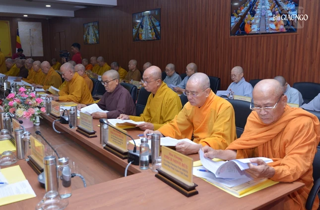 Thay mặt chủ tọa hội nghị, Trưởng lão Hòa thượng Thích Thiện Nhơn lấy ý kiến biểu quyết của toàn thể đại biểu, thống nhất thông qua bản báo cáo hoạt động Phật sự 6 tháng đầu năm và chương trình Phật sự 6 tháng cuối năm 2024 của GHPGVN.