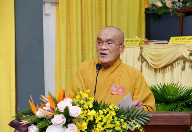 Thượng tọa Thích Đức Thiện, Phó Chủ tịch kiêm Tổng Thư ký Hội đồng Trị sự đã báo cáo các hoạt động Phật sự của GHPGVN năm 2020.