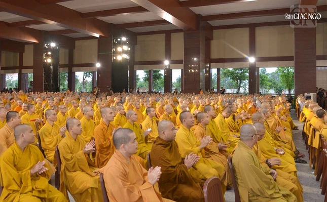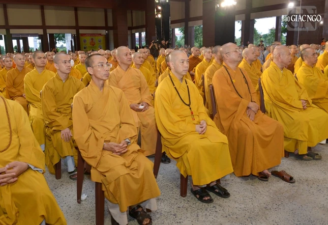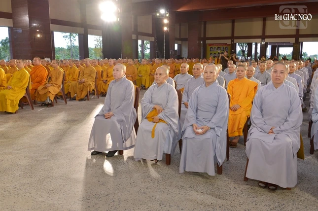 Tham dự khai mạc có các Phó Viện trưởng cùng lãnh đạo các khoa, giảng viên đang tham dự khóa huân tu và hơn 1.000 Tăng, Ni sinh tu học nội trú và các Phật tử