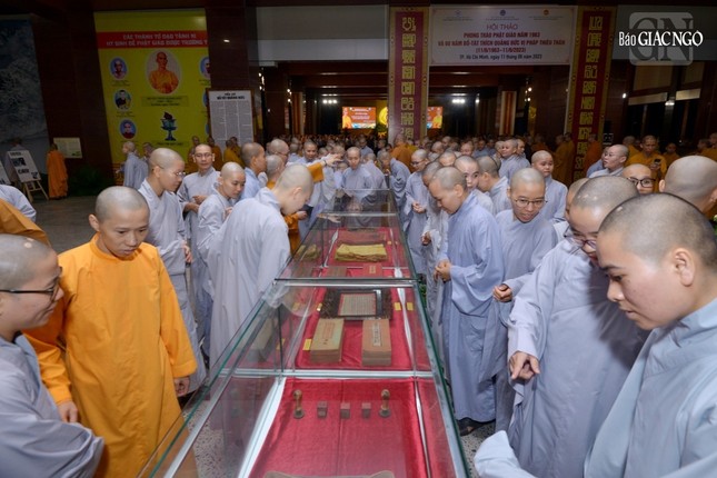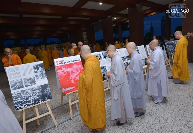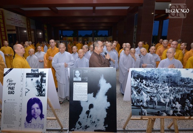 Theo đó, buổi triển lãm có gần 100 hiện vật ấn phẩm báo chí, tư liệu hình ảnh liên quan đến cuộc vận động của Phật giáo năm 1963 đòi chính quyền Ngô Đình Diệm thực thi chính sách bình đẳng tôn giáo và đỉnh cao là sự kiện vị pháp thiêu thân của Bồ-tát Thích Quảng Đức tại ngã tư Phan Đình Phùng - Lê Văn Duyệt (nay là Nguyễn Đình Chiểu - Cách Mạng Tháng Tám); các bức ảnh chụp, tranh vẽ sơn dầu do các nghệ nhân, nhiếp ảnh gia thực hiện được trưng bày tại tiền sảnh của đại giảng đường Minh Châu trong thời gian diễn ra Hội thảo.