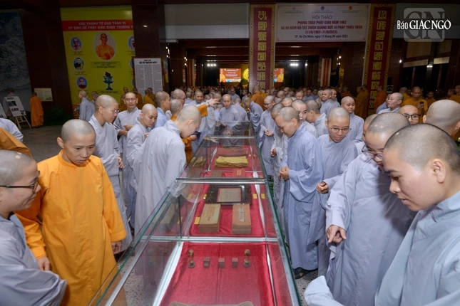 GNO - Chiều nay, 10-6, tại đại giảng đường Minh Châu, Ban Tổ chức Hội thảo đã khai mạc triển lãm những di vật Bồ-tát Thích Quảng Đức sử dụng lúc sinh tiền, cũng như những tư liệu báo chí về phong trào đấu tranh bất bạo động bảo vệ Phật giáo trong Pháp nạn năm 1963.