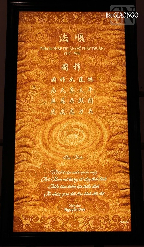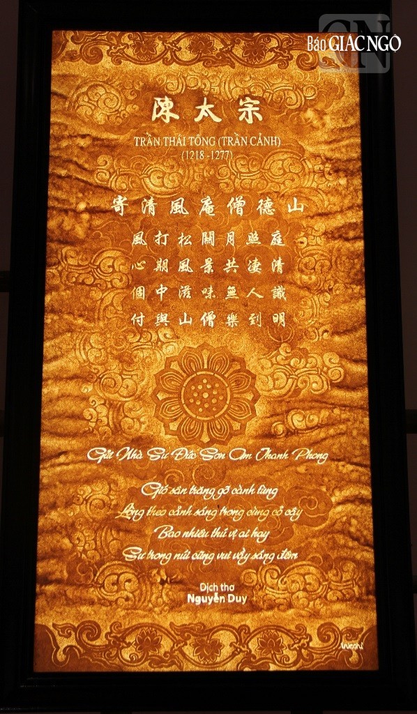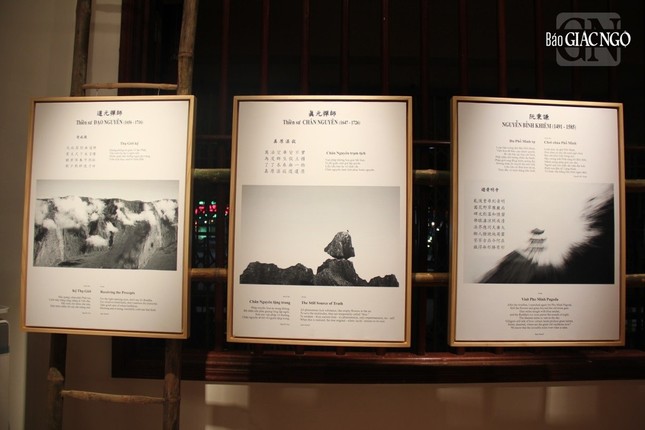 Trong không gian triển lãm tuyển chọn thơ thiền Việt Nam thời Lý - Trần và thời Lê - Nguyễn qua bộ sách độc bản được ấn loát trên giấy dó khổ 8 1x 111 cm cùng 15 trang thơ trong sách lồng khung 60 x 80 cm được thể hiện bằng ba ngôn ngữ (Hán - Việt - Anh) do nhà thơ Nguyễn Duy hợp tác với hai nhà thơ Nguyễn Bá Chung và Kenvin Bowen biên soạn và biên dịch. Ngoài ra, còn có hơn 30 bức ảnh bản và tranh trúc chỉ các bài thơ thiền được trưng bày trong không gian triển lãm.