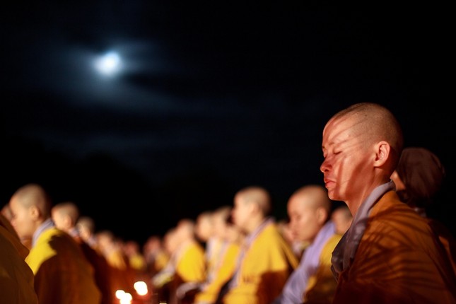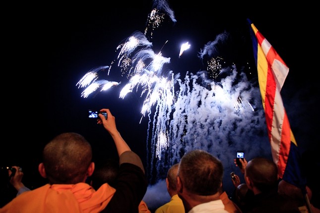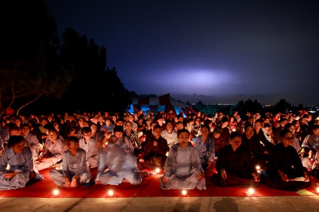 Núi Phật Tích được thắp sáng bằng 10.000 ngọn nến. Pháp hội đại bi của nhà Phật được cử hành với 500 kinh sư niệm 108 biến Đại Bi