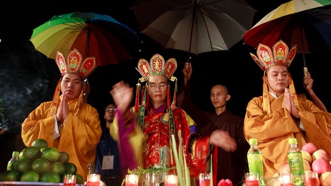 Tiếp sau, các nhà sư làm Lễ Đại Trai Đàn Mông Sơn, một trong những nghi lễ lớn của Phật giáo thể hiện uy linh Phật pháp và tinh thần từ bi hỉ xả cứu độ chúng sinh, cứu vớt cô hồn tại chốn Phật đường.