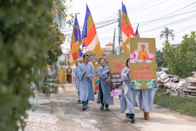 Theo đó, lúc 6 giờ, đoàn chư Tăng Ni, Phật tử các huyện, TP.Khánh Sơn, Khánh Vĩnh, Cam Ranh, Cam Lâm và Diên Khánh vân tập về Tượng đài Bồ-tát Thích Quảng Đức đối diện chùa Long Sơn. Đoàn tập trung cùng với đoàn Tăng, Ni và Phật tử TP.Nha Trang tiếp tục di chuyển đi Ninh Hòa và điểm đến là TT.Vạn Giã, H.Vạn Ninh, nơi Bồ-tát Thích Quảng Đức sinh ra, xuất gia tu học.