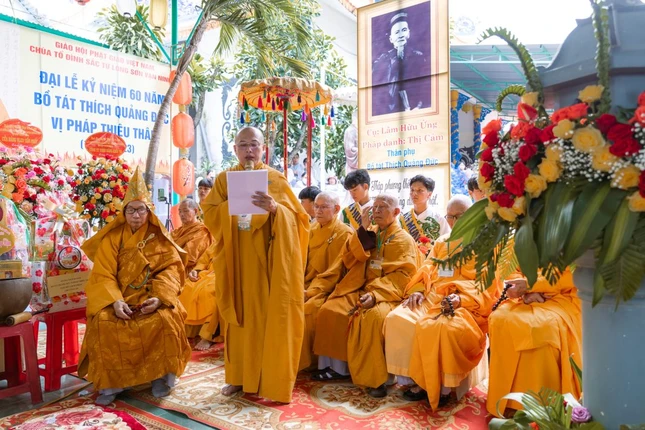 Tại buổi lễ, Thượng tọa Thích Thiện Phước, Phó Trưởng ban Trị sự kiêm Chánh Thư ký Phật giáo tỉnh Khánh Hoà tuyên đọc tiểu sử Bồ-tát Thích Quảng Đức; Thượng tọa Thích Giác Nghĩa, Trưởng ban HDPT Phật giáo tỉnh tuyên pháp ngữ cúng dường, đảnh lễ Bồ-tát; Thượng tọa Thích Thường Tín, trụ trì chùa Sắc Tứ Long Sơn, nơi Bồ-tát xuất gia phát biểu cảm tưởng; Thượng tọa Thích Giác Không, Trưởng ban Trị sự GHPGVN TP.Cam Ranh, Trưởng ban Hành hương đọc lời cảm tạ, tri ân chư tôn đức Tăng, Ni và Phật tử cũng như các cấp chính quyền hết lòng hỗ trợ để Phật sự hành hương về quê hương của Bồ-tát được thành công viên mãn.