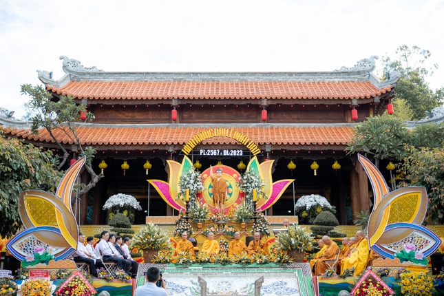 Mở đầu buổi lễ, Hòa thượng Thích Quảng Thiện đã cung tuyên Thông điệp Phật đản Phật lịch 2567 của Đức Pháp chủ GHPGVN. Tiếp theo, Hòa thượng Thích Minh Thông đọc Diễn văn Phật đản của Hòa thượng Chủ tịch Hội đồng Trị sự GHPGVN.