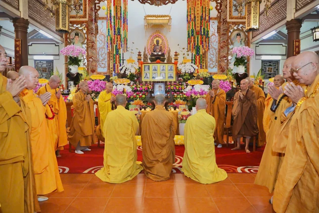 Sau lễ Bố-tát, toàn thể hội chúng đã lắng lòng nghe lại hành trạng của cố Trưởng lão Hòa thượng Thích Chí Tín, bậc Thầy gần gũi và khả kính, thân thiết với Tăng Ni, đồng bào, đặc biệt là những người có hoàn cảnh khó khăn tại TP.Nha Trang cũ.