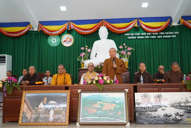 Đại diện Trường Trung cấp Phật học Khánh Hòa, Đại đức Thích Tường Nghiêm, Hiệu Phó nhà trường điều buổi giao trên tinh thần học hỏi, gắn kết.