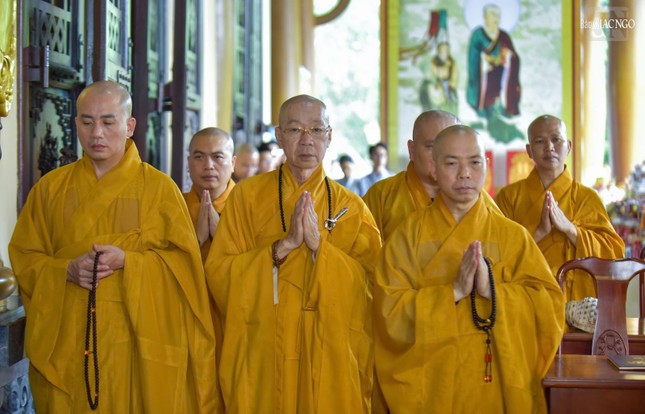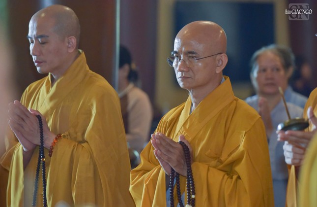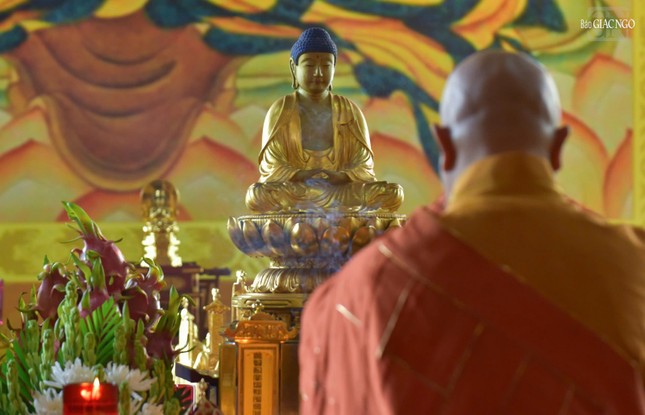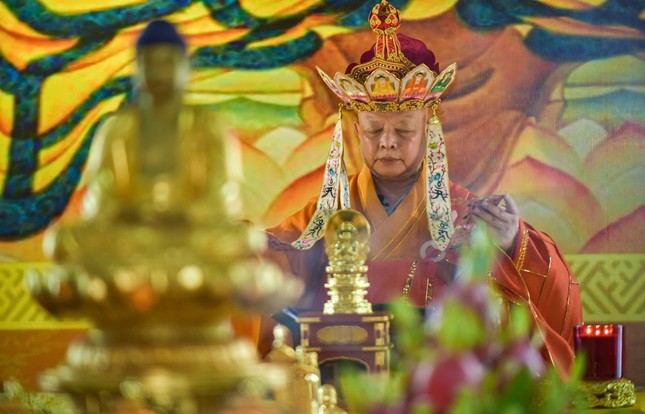 Hòa thượng Thích Lệ Trang, Trưởng ban Nghi lễ T.Ư, Trưởng ban Trị sự GHPGVN TP.HCM chủ trì pháp sự, cùng chư tôn đức Ban Trị sự GHPGVN TP.HCM thực hiện khoa cam lồ thí thực theo nghi thức truyền thống.