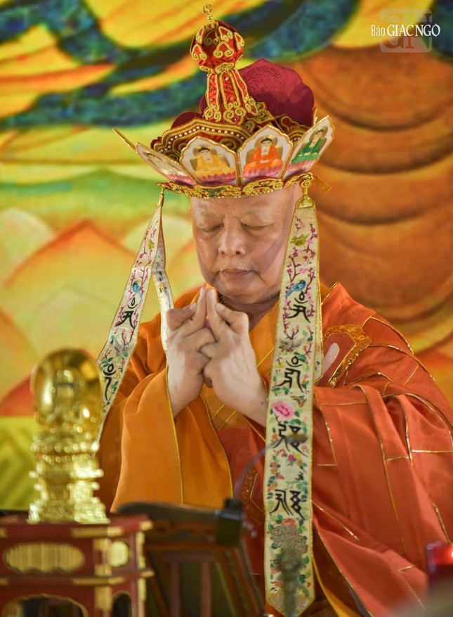 Hòa thượng sám chủ đăng đàn thực hành phổ thí hộc thực, hồi hướng siêu tiến chư anh linh tiền nhân vì nước quên mình, đồng bào đã hy sinh vì Tổ quốc, cầu nguyện âm siêu dương thái, đất nước thịnh trị và phát triển.