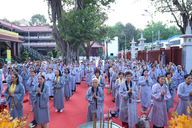 Tham dự buổi lễ có chư vị giáo phẩm Ban Thường trực Ban Trị sự GHPGVN TP.HCM: Thượng tọa Thích Thiện Quý, Phó ban kiêm Chánh Thư ký; Thượng tọa Thích Quang Thạnh, Phó ban Trị sự kiêm Trưởng ban Giáo dục Phật giáo; Thượng tọa Thích Quảng Chơn, Trưởng ban Nghi lễ; Thượng tọa Thích Trung Nguyện, Phó Thư ký kiêm Chánh Văn phòng; chư tôn đức Ủy viên Ban Trị sự, Ban Nghi lễ, Ban Hoằng pháp GHPGVN TP.HCM, cùng chư Tăng và Phật tử các đạo tràng trên địa bàn TP.HCM.