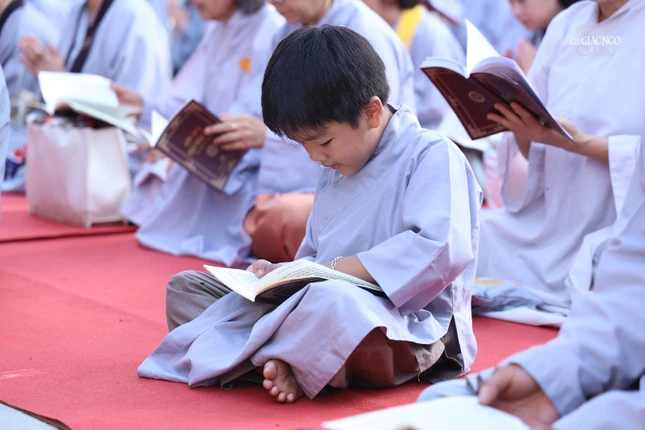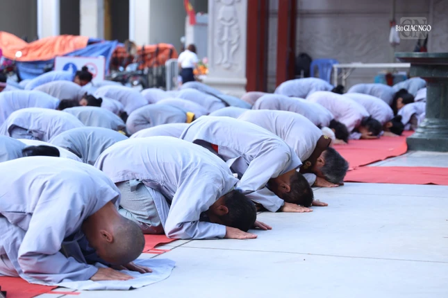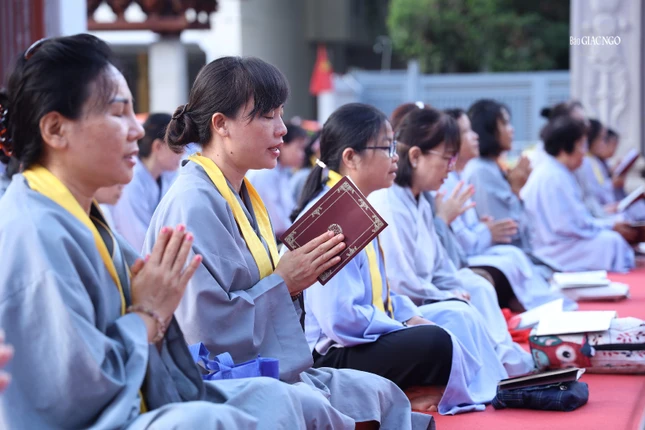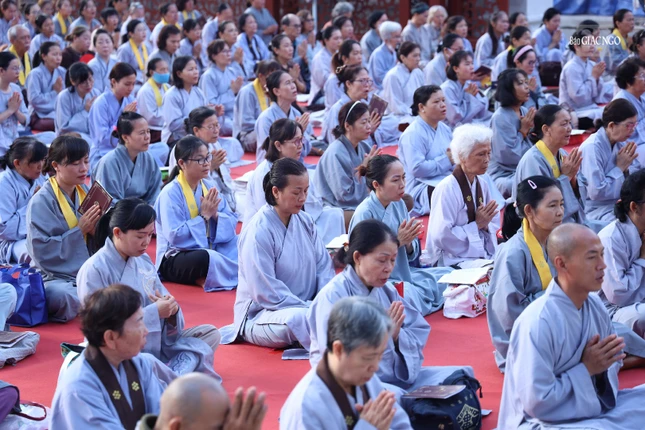 Sau đó, chư tôn đức Ban Nghi lễ đã hướng dẫn Phật tử trì tụng thần chú Đại bi, tụng kinh Phổ môn cầu nguyện thế giới hòa bình, chúng sinh an lạc.