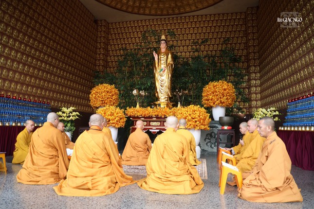 Trong không khí trang nghiêm, Thượng tọa Thích Quảng Chơn duy-na, cung tuyên pháp ngữ và xưng tán 12 đại nguyện của Bồ-tát Quán Thế Âm; sau mỗi đại nguyện, đại chúng nhất tâm đồng niệm danh hiệu và chí thành đảnh lễ Ngài.