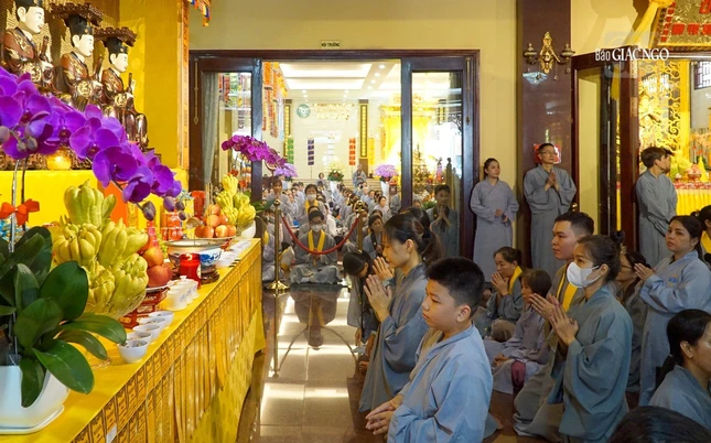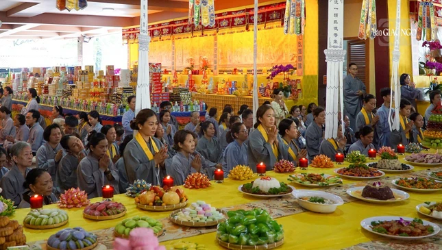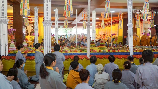 Theo đó, với sự chủ lễ của Hòa thượng Thích Lệ Trang, Trưởng ban Nghi lễ T.Ư, Trưởng ban Trị sự GHPGVN TP.HCM, Trưởng ban Tổ chức, cùng chư tôn đức Ban Trị sự GHPGVN TP.HCM, Ban Nghi lễ TP.HCM đã thực hiện khóa lễ cúng Phật tại Pháp hội Vu lan với đông đảo Phật tử các đạo tràng, người dân tham dự. Khóa lễ hiệp lực cầu nguyện, hồi hướng công đức đến cha mẹ hiện tiền được bình an, cửu huyền thất tổ được siêu sinh về cảnh giới an lành.