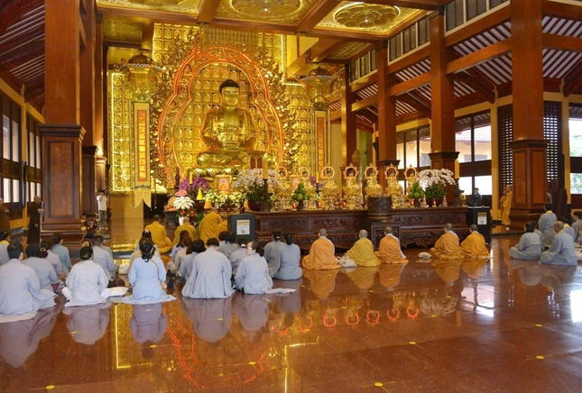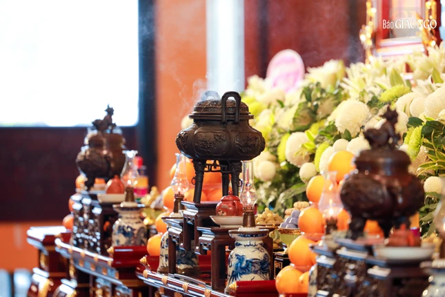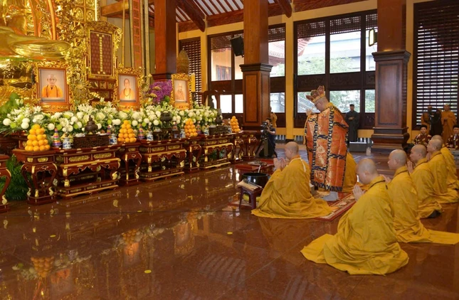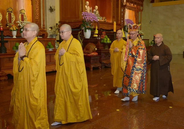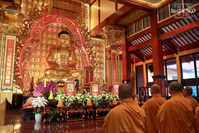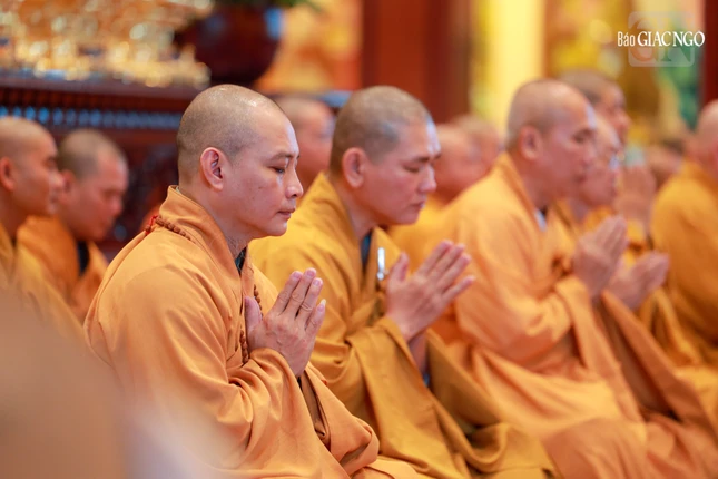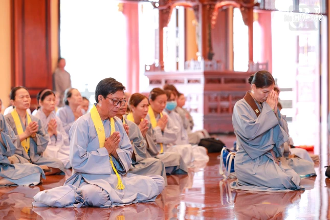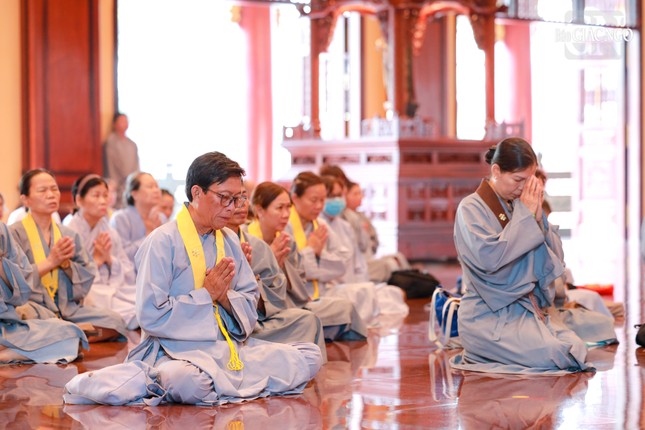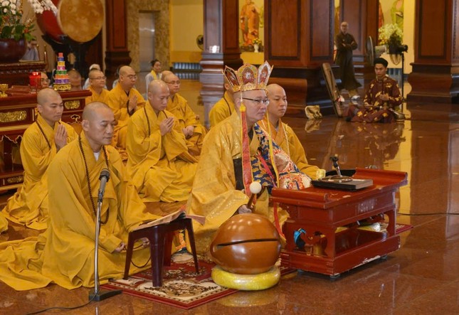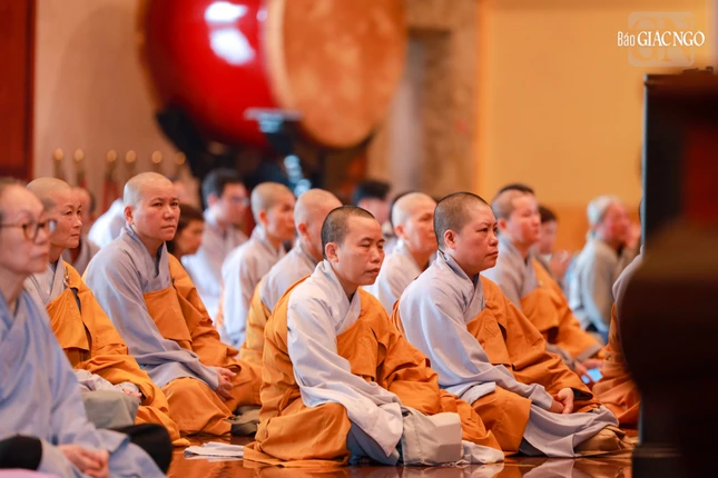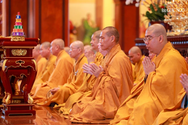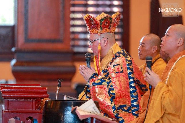 Đúng 7 giờ sáng, Thượng tọa Thích Thanh Lợi, Phó Trưởng ban kiêm Chánh Thư ký Ban Nghi lễ T.Ư đương vi chủ sám; cùng chư tôn đức Ban Kinh sư Phật giáo miền Bắc đã quang lâm Phật điện cử hành khóa lễ.