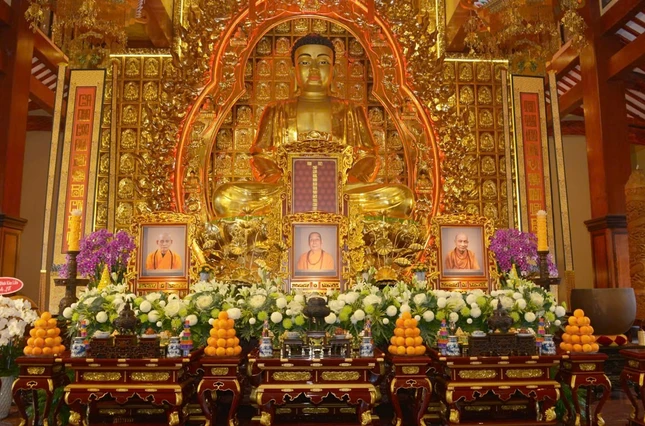 Thượng tọa Thích Thanh Lợi cùng chư tôn đức Ban Kinh sư cử hành khóa lễ theo truyền thống Phật giáo miền Bắc |