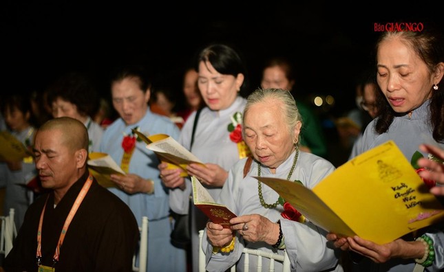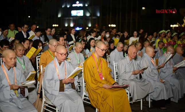 Sau phần phát biểu khai mạc, chư tôn đức đã đối trước trụ kinh Chuyển pháp luân, cùng thắp nến đồng phúng tụng bài kinh này để cầu nguyện đạo pháp trường tồn, chúng sanh an lạc.