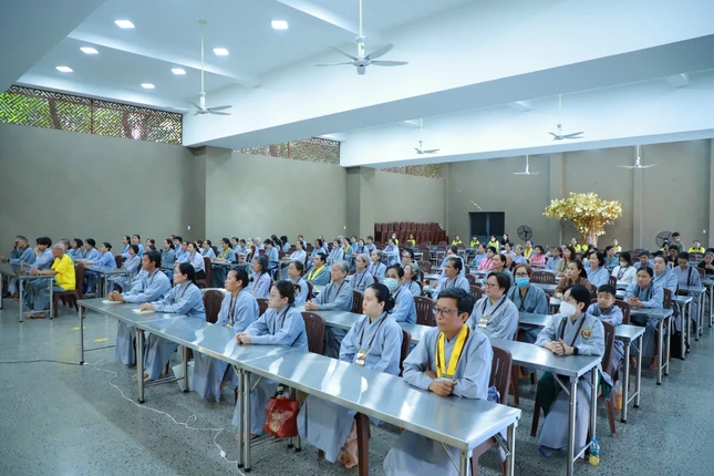 Sau thời khóa niệm Phật do Đại đức Thích Thiện Lâm, Phó Thư ký Ban Hoằng pháp GHPGVN TP.HCM hướng dẫn, đạo tràng được lắng nghe Thượng tọa Thích Trung San, Ủy viên Ban Hoằng pháp Phật giáo TP.HCM, Hiệu trưởng Trường trung cấp Phật học tỉnh Bến Tre; Thượng tọa Thích Minh Nhựt, Phó Trưởng ban kiêm Chánh Thư ký Ban Hoằng pháp GHPGVN TP.HCM chia sẻ pháp thoại với chủ đề: “Học cách vượt qua nghịch cảnh theo quan điểm Phật pháp”.