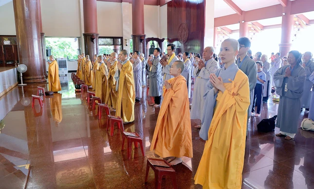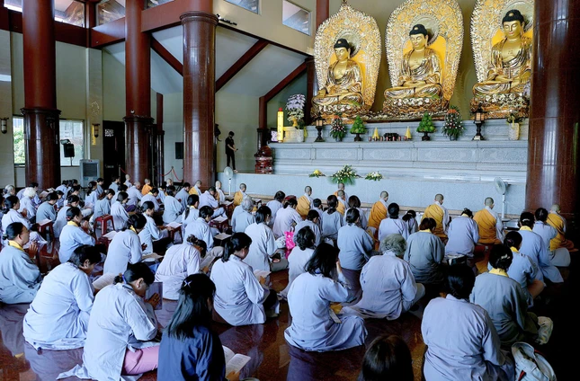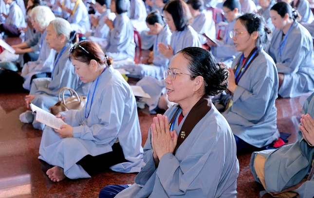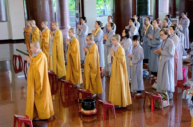 Sau thời thuyết pháp, quý Phật tử bước vào thời khóa hành trì: niệm Phật, tụng kinh, tọa thiền và thọ trai trong sự thanh tịnh cùng chư tôn đức Ni và Ni sinh nội trú tại chùa Thanh Tâm.