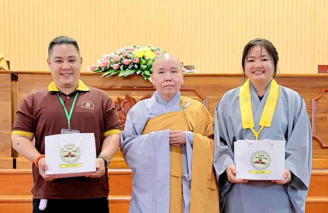 Tặng quà khích lệ tinh thần đến các Phật tử tham dự khóa tu |