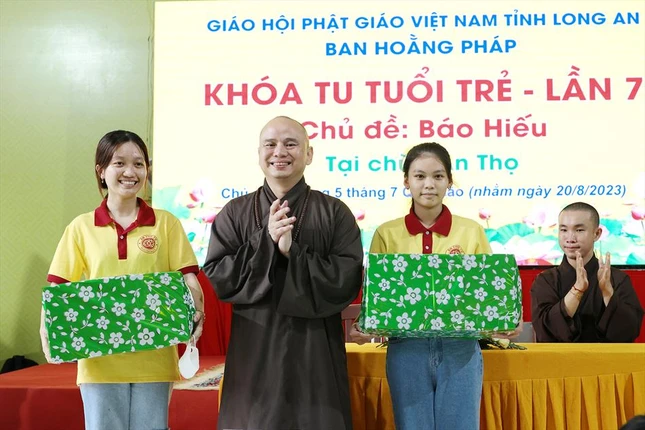 Tại khóa tu, Hòa thượng Thích Minh Thiện, Trưởng ban Trị sự GHPGVN tỉnh Long An đã có thời pháp thoại, chia sẻ với các bạn trẻ về tình cảm gia đình, ân đức sinh thành dưỡng dục của cha mẹ, qua đó nhắc nhở về đạo làm con, phải vâng lời, hiếu thảo với song thân.