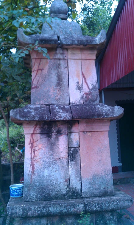 Khi vợ chồng bà lên gần tới nơi, thấy động, mấy người đang hì hục đào bới dưới chân tháp vội vàng bỏ chạy, bỏ lại đống đồ nghề là cuốc, thuổng, xẻng, choòng… Thì ra chúng là những tên chuyên săn tìm cổ vật. Tới nơi, vợ chồng bà đã sững sờ khi thấy cột tháp đã bị phường đạo tặc đào tận gốc theo kiểu hàm ếch.