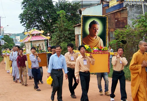 Nhân lễ an vị, chùa Sùng Đức đã tổ chức cung nghinh Xá lợi Phật do chùa Thanh Sơn (huyện Hóc Môn, TP.HCM) cúng dường về an vị tại chùa.