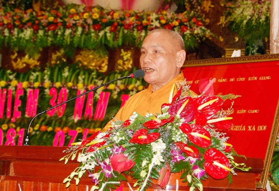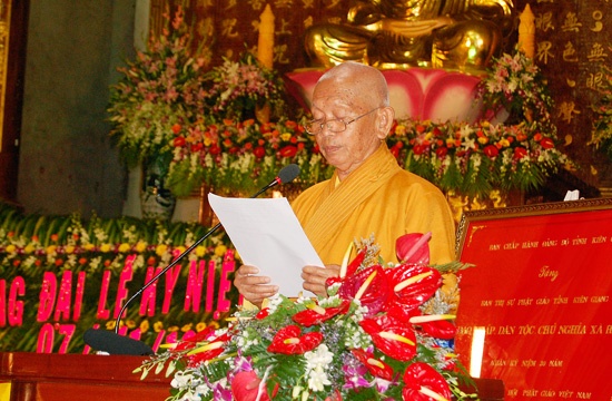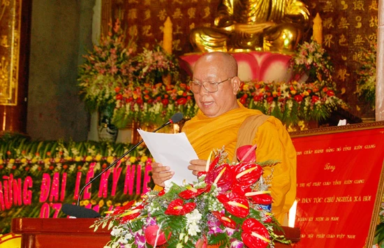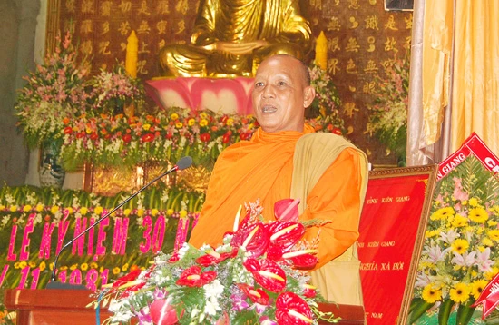 Tại buổi lễ, HT. Thích Huyền Thông - UV HĐTS, Phó ban Thường trực BTS đã đọc Thông điệp của Đức Pháp chủ GHPGVN, HT. Danh Dĩnh - UV HĐTS, Phó BTS đọc Diễn văn của Hòa thượng Chủ tịch HĐTS nhân kỷ niệm 30 năm thành lập Giáo hội, TT. Danh Lân - UV HĐTS, Phó Thư ký BTS đọc báo cáo những thành tựu Phật sự trong 30 năm của GHPGVN. Bên cạnh đó, ĐĐ. Thích Minh Nhẫn - Chánh Thư ký BTS đã báo cáo thành quả hoạt động Phật sự 30 năm qua của Ban Trị sự THPG Kiên Giang.