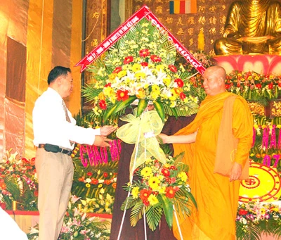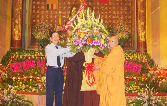 TƯ GH và chính quyền tỉnh tặng hoa chúc mừng đại lễ